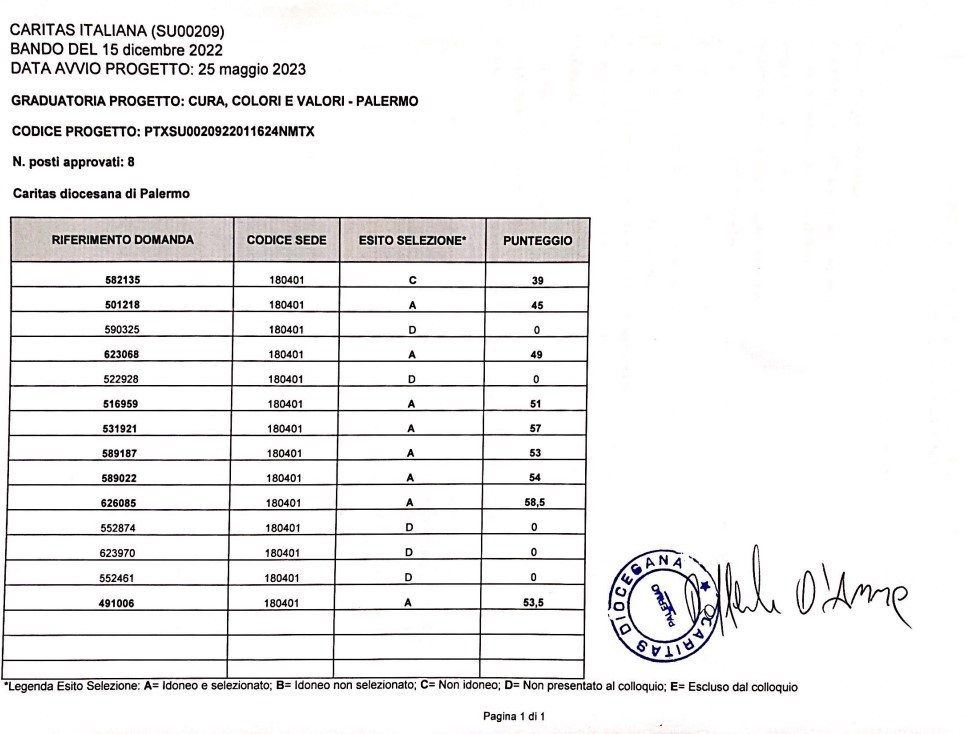 GRADUATORIA Progettualità Cura, colori e valori-Palermo (SCARICA), con sede unica progettuale al